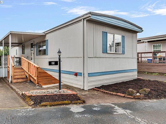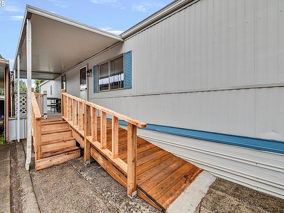 *** Seller willing to carry contract with $20,000 down. This charming, recently remodeled single-wide manufactured home is nestled in a peaceful 55+ community in the heart of Canby, Oregon. The home offers 2 cozy bedrooms and 1 beautifully updated bathroom, perfect for those looking for a low-maintenance, comfortable living space. Inside, you'll find a modern, open-concept design that maximizes space and natural light. The kitchen has been recently renovated with new countertops, fresh cabinetry, and energy-efficient appliances. The living room is inviting, with updated flooring/new carpet and freshly painted walls that complement the home’s fresh, contemporary feel. Outside you have a big front porch perfect for your morning coffee, back deck, and low maintenance yard. Space rent is $925/month.