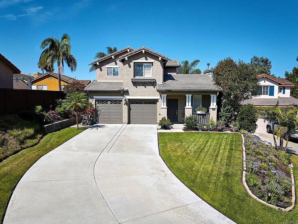 Rare and Highly upgraded 5BR & 3BA beautiful home located in desirable Rolling Hills Ranch with NO MELLO ROOS!! Home is immaculate and recently power washed entirely. Recently painted in 2022 features tons of upgrades including a private courtyard, custom paint, upgraded kitchen, appliances, Double-paned windows, custom shutters throughout, upgraded fixtures, countertops, backsplash, beautiful plantation shutters, security system, a/c, & more! All located on an extra large lot in the heart of the cul-de-sac! This highly desirable home also features mountain views from the front of the home and ocean views from the upstairs master bedroom! Beautiful manicured landscaping, oversized back yard for entertaining, full sprinkler system, removable patio cover, and much more! The extra large 7839 SQ.FT elevated lot offers a luxurious extended driveway plus a backyard that is one of the largest in this development with enough room for a pool! Enjoy the private cul-de-sac location with NO neighbor directly behind you and close enough to walk to Marshall Elementary School. Rolling Hills Ranch offers fabulous neighborhood amenities including swimming pools, spas, jogging trails, parks, tot lots and tennis courts. Close to shopping, toll road, schools, and much more such as but not limited to: New patio back doors, New garage doors and motor opener, wifi remote control and keypad on front porch. New HACV remote wifi control unit on first floor with temperature remote sensors on 2nd floor and 1st, Ring alarm system, front door, 5 camera, every window and door has sensors, remote control and wifi, 2 keypads by front door inside and by laundry room. Front porch light timer with blue tooth remote control. Sprinkler unit control box remote control, wifi with additional service for rain stop usage. Sprinkler unit has 6 zones, Chimney recently cleaned and much more! Too much to list! A must see!