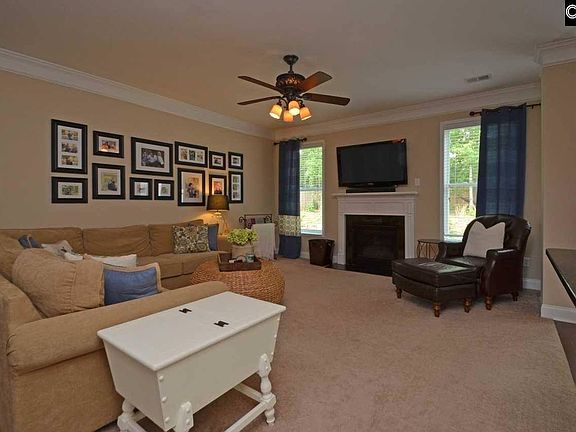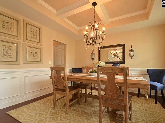 Gorgeous 5-bedroom with too many features/upgrades to list here! Stone & hardy plank exterior, 9+ ceilings, 2-story foyer, hardwoods & ceramic tile floors, coffered ceilings, trayed ceilings, crown molding, granite counters, stainless steal appl, recessed lighting, marble back splash, wood paneled walls, ceiling fans, upgraded lighting/plumbing fixtures, gas range, master bath suite, walk-in closets, private /fenced back yard backs to trees w/ stone landscaping, sprinkler system, and much more! Landscaped yard with hardwoods and privacy fence. Neighborhood pool, pool house, and play ground! Chapin schools but close to I-26 and Ballentine/Harbison! Short golf cart ride to Lighthouse Marina, Catfish Johnnies, and Rusty Anchor Bar & Grill!