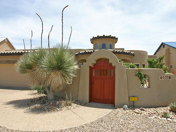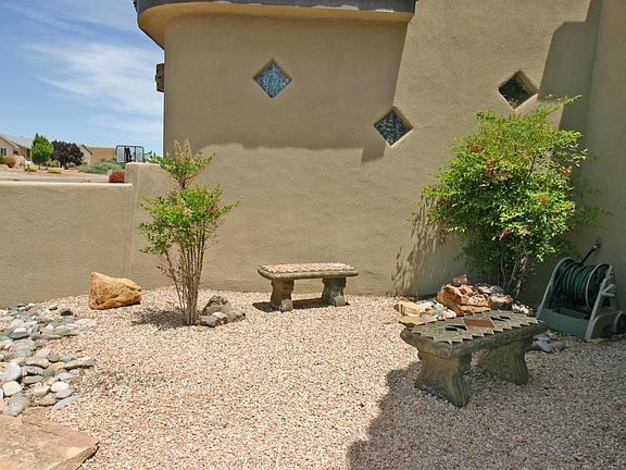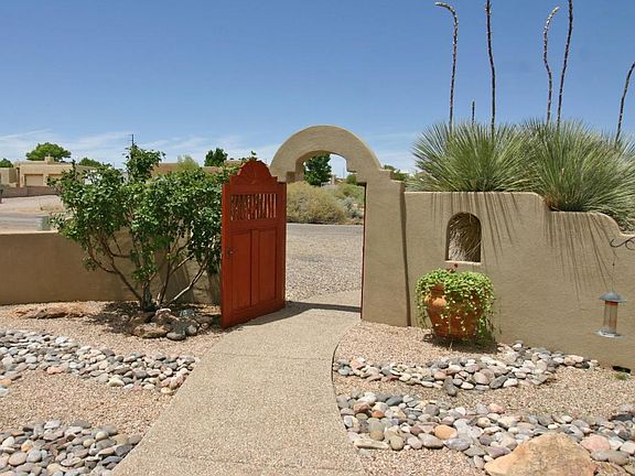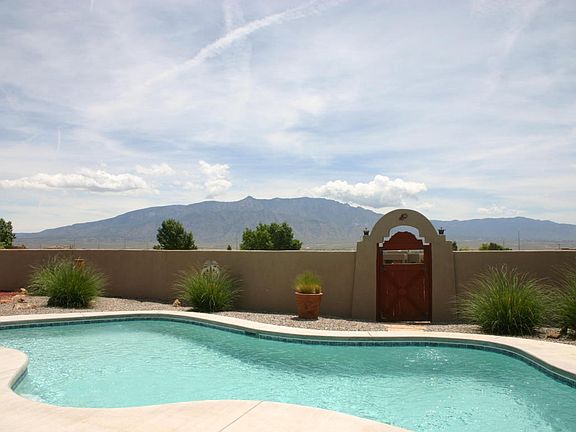 Enter to your own Private Courtyard into the Turret Entry Way of your Custom Painted Home! The Great Room has Beamed Ceilings, Views, and a Surround Sound System with a Diamond Finish Kiva Fire Place. Stained Concrete Floors with Radiant Heat and Tile Throughout Home! Bright Beautiful Kitchen has Stainless Steel Appliances (Refrigerator Stays) and Spacious Granite Countertops. Master Bedroom W/ Snail Shower and Jacuzzi Tub awaits you! Outside relax under your Large, Covered Patio with Outdoor Surround Sound Entertainment, or go for a Swim in your In Ground Grunite/w Plaster Finish, Salt Water Pool which is 3'-5' in Depth. Like to BBQ? (BBQ Grill Stays). Desire an Amazing, Unobstructed VIEW of the Sandias? You got it! This home has everything one could imagine and more. It is Perfection.