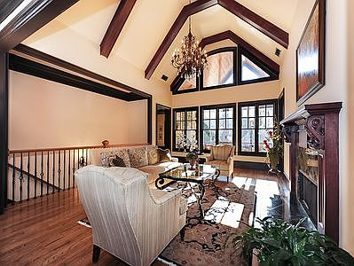 - Interior: Double Vnty Other, Trey Ceilings, Bookcases, Disp Attic Stairs, Exposed Beams, 10 ft + Ceil Lower, 10 ft + Ceil Upper