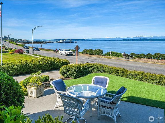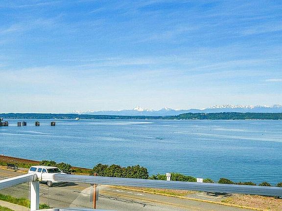 Enjoy a front row seat on Sunset Ave with sweeping and unobstructed Sound, Mountain, and Ferry views. Completely rebuilt in 2014 w/designer tiles, soapstone counters, handsome hardwoods, air conditioning, electric car charging, and backup generator. 1644sf of garage space w/room for 5 cars and a detached studio apartment, perfect for caretaker, w/kitchen, full bath, and laundry. Generous primary suite w/luxurious bath draped in tile, walk-in closet, laundry, and sitting room/office opening to a large covered deck w/heaters. An oversized bonus room w/wet bar, fireplace, and bath could be transformed into 2 additional bedrooms. Potential to add an elevator. A rare opportunity in the Bowl and an easy stroll to downtown Edmonds.