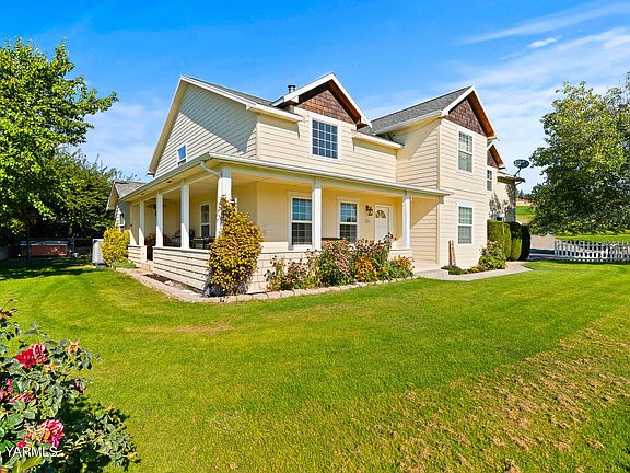 Country Living in Selah! This private retreat offers 5-bedroom, 4-bath home is perfectly situated on 2.64 acres with an exceptional blend of comfort, function, and lifestyle. Upon entering, you'll be greeted by soaring ceilings and a warm woodstove that create an inviting living space. The kitchen features hardwood floors, a spacious breakfast bar, and a cozy eating nook, with a convenient office just steps away. The expansive primary suite includes a walk-in closet and double vanity, separate shower and soaking tub, providing the perfect place to unwind.This property also offers separate living quarters complete with a kitchen, living room, bedroom, and full bath--ideal for guests, multi-generational living, or additional income opportunities. Outdoor living is at its finest with a heated inground gunite pool, hot tub, and covered back patio where you can relax and enjoy the views. Additional amenities include Selah-Naches irrigation, underground sprinklers, solar panels, a three-car garage, and a separate garage/carport with flexible office or gym space. This rare Selah property combines space, style, outdoor entertaining and convenience--The perfect place to gather, grow, and make memories--welcome home to Selah.