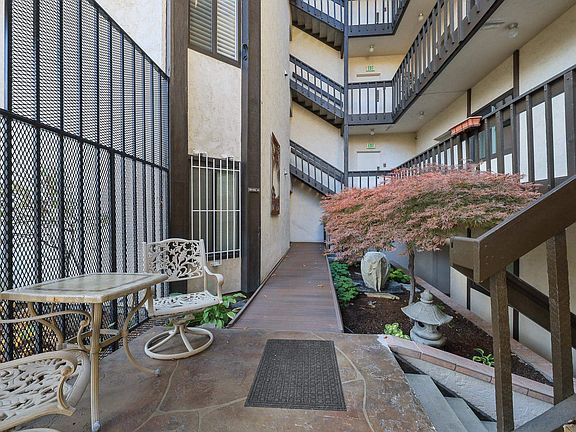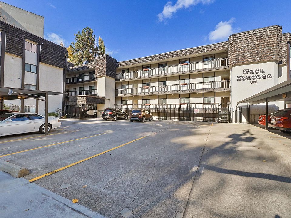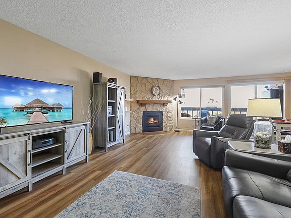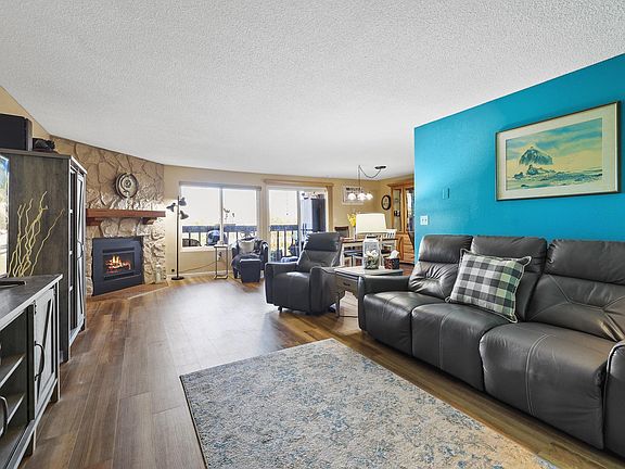 Incredible city & Mt. Spokane views from this top floor unit in the Park Terrace bldg across from Marycliff & Edwidge Woldson Park. Lovely floor plan includes 2 bdrms - one w/ built-in Murphy bed w/ nightstand & reading light so makes a super office/guest room combo, 2 baths, spacious open living space w/ cozy gas fireplace on thermostat (new in 2022), informal din area & breakfast bar and slider to the private deck (astroturf under rubber mat tiles). This unit also features newer luxury vinyl plank flooring throughout, updated kitchen w/ painted cabinets, quartz counters & newer stainless steel appliances (less than five years old), ceiling fans in the bedrooms, closet organizers including in the walk-in closet in the primary bdrm, laundry in the main bath (washer & dryer stay!), newer wall a/c (2021), new toilets, and primary bath remodel w/ new vanity, hard surface counter, new tub surround and glass door. This unit has 1 spot in the garage (metal shelving unit will stay), storage locker & shed on deck!