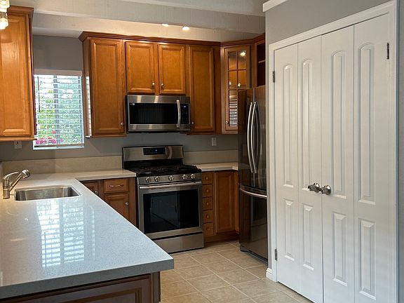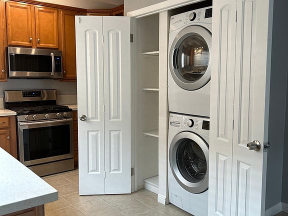 READY by Oct 15th AFTER all brand new double paned windows are installed! LOOK NO FURTHER!! Freshly painted condo incudes all appliances (washer/dryer/refrigerator with icemaker /dishwasher/ microwave)! Beautiful quartz kitchen countertop and granite counter in upstairs bathroom. This gem in the City of La Habra is 2-story / 2 bdrm / 1.5 ba/ 2 car automatic garage, which has cabinets and lots of storage space and hooks to hang bikes! Open spacious floor plan on 1st floor. Gas fireplace in living room, beautiful gray laminate flooring throughout, brand new central AC, ceiling fans and an in-unit laundry closet and back patio. perfect size for a patio set and BBQ! Minutes away from Brea Mall, downtown Brea and La Habra Regal Cinema. Small pets welcome. Beautiful grounds include a sparkling swimming pool. Landlord pays water, trash and sewer. Come see this beauty before it's gone!