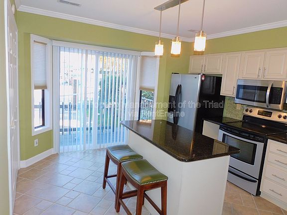 Charming 2 bedroom, 1.5 bathroom brick town home. This is an end unit located in the Wafco Mill Community with easy access to UNCG or downtown Greensboro. Beautiful eat-in kitchen with granite counters, island, lots of cabinets, and stainless range/oven, refrigerator, dishwasher and microwave. Laundry closet with washer/dryer provided as a convenience. Laminate wood flooring and ceramic tile on the first level. Both bedrooms on the second floor with a shared bathroom. Ceiling fans throughout. Covered front entrance and rear patio. Parking by permit only.