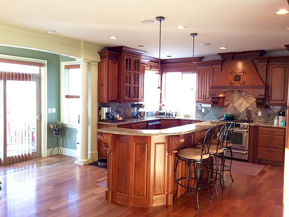 High end Custom Craftsman, 4th bdrm is also a bonus rm. Granite counters on all counter surfaces w/marble backsplash in kitchen, Jenn-air appl, travertine flrs in bathrooms and master shower.Solid mahogany flrs and custom cabinets w/ soft closure. Upgraded wood trim thru-out. B/I speakers Prewired for sec system. Skylights in multiple areas, A/C B/I vac. Fresh paint in and out. 600 sf unfin basement VIEWS galore.