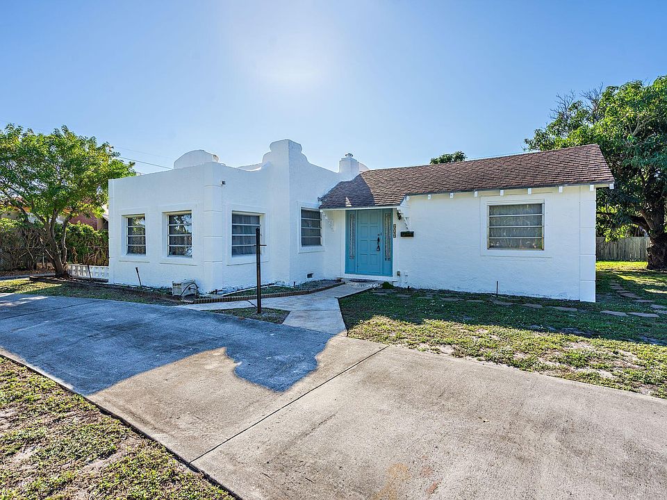 Charming Spanish Colonial in the heart of West Palm Beach! This home features 2BR/1BTH in the main house and has a large 475 sq-ft studio cottage all on a large 10,800 sq-ft lot. Through the front door of the main house opens up to a grand living room with high vaulted ceilings and exposed hardwood beams. Beyond the living room leads into the large formal dining room with gleaming original hardwood floors. Behind the dining room is the galley style kitchen. The home also features a large enclosed Florida room. The expansive yard boasts a large studio guest cottage with a kitchen and full bath. The home sits on a large lot with plenty of room for entertainment. Close proximity to Palm Beach International Airport, Antique Row, Palm Beach Island, and Grandview Public Market, and The Square.
