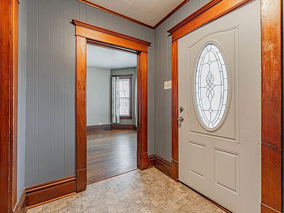 Boulevard beauty! Sleek ultra charming yet modern three bedroom, two full bath story and a half vinyl sided residential dwelling with loads of features! Main floor of home boasts a quaint foyer, front facing bright and airy living room with gorgeous wood flooring/woodwork and pocket doors, generous formal dining room, two bedroom areas, full hall bath, and a gorgeous fully equipped eat-in kitchen with breakfast bar area, adjacent laundry/pantry area, and an exterior access point. Upstairs, you will find a fantastic private primary suite with a gorgeous tiled full bath with a walk-in shower, walk-in closet, and front facing exterior balcony with a choice view of the boulevard. Property also features a large usable basement, 16X18 side/rear deck, generous privacy fenced backyard, two car detached garage with rear alley access as well as adjacent off-street parking, front porch, vinyl replacement windows, newer furnace and water line, extensive recent exterior sewer line repairs -- so much to offer here! All appliances including washer and dryer to remain upon settlement for new owner(s). A true gem of a home!