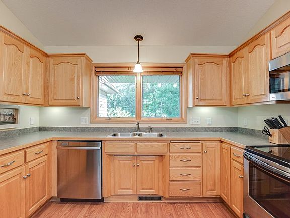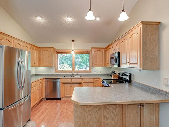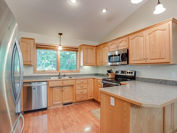 This home has it all! 4 bedrooms (3 on one level), 3 bath, open & spacious floor plan, main floor laundry, private owner's suite, gas fireplace, deck and an extra garage...all on a gorgeous wooded acreage lot with an irrigation system. Quality built home has a new roof (2018) and ejector pump. Attached 3 car garage is insulated. Enjoy the finished lower level (walk out) with it's awesome entertainment or family hang out space with a wet bar included! All appliances stay!