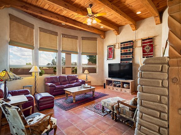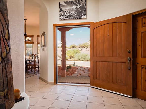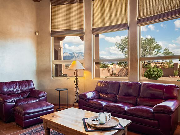 Stunning, custom southwest home! This one story 3 bedroom 2 1/2 bath has all the charm. It features Grandview's of the Sandia Mt's. The home has great design flow. The kitchen was updated in 2022 with stainless steel appliances and beautiful granite countertops. The living room is cozy and features artisan handmade adobe walls as you enter, a gas fireplace, tons of natural light. Enjoy Refridgerated air. The primary bedroom has an En suite bathroom with a walk-in closet. The two other bedrooms share a Jack and Jill bathroom. The backyard is great for entertaining or just relaxing while enjoying the evening sunset. There is also an oversized gate for access to the backyard. Large driveway that offers an area for your RV or other outdoor toys. Oversized garage with plenty of storage.