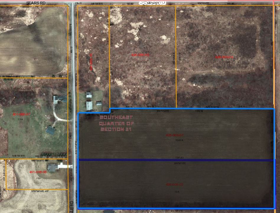 Excellent building/recreation location. This nearly 20 acre parcel is in a prime location just south of Sears Rd. in summit township. All tillable land. Looking to build a dream home, this could be the perfect spot for you. Call today for more information or to schedule a time to walk the property.