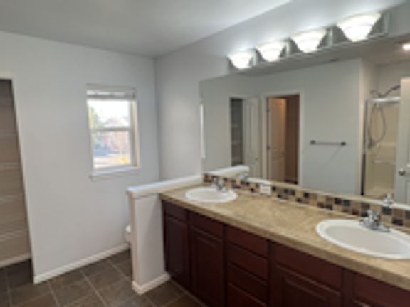 Beautiful home on a corner lot in the highly desirable Radiance community. This lovely home features 3 bedrooms, 2.5 baths, hardwood floors in the kitchen and eating spaces, carpet in living room and bedrooms. The granite kitchen counters give this home a luxury feel and a nice-sized eating bar, separate dining area and living room with a gas fireplace prove the point. All bedrooms are upstairs, including a spacious primary suite. Two car garage! You will enjoy the lovely outdoor living area with a fully fenced private backyard, no homes in front of you and a nice-sized patio.