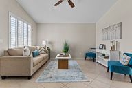 Custom side-yard paversFinished garageUpgraded fixturesBright kitchenAll-tile flooringCeiling fansInviting outdoor spaces