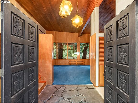 Rare opportunity to own a true "time capsule" mid-century modern home with original light fixtures, stunning wood paneling, and classic mid-century architecture. Walls of windows take in the majestic, wooded setting with walking trails and a gardener's dream with loads of unique plantings. The property consists of 2 lots over 1000ft off River Rd and is located inside the urban reserve which indicates future development. Over $150K in marketable timber per a 2022 timber cruise.