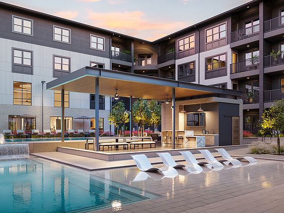 - Exterior features: Barbecue, Bicycle storage, Co-Working Spaces, Coffee Bar, Conference Rooms, Electric Vehicle Charging Stations, Keyless Entry, Kid's Activity Room, Package Receiving, Pet Park, Rentable Private Garages, Stainless Steel Appliances, Studio, One & Two Bedroom + Townhomes, White Sand Countertops