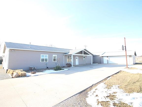 Welcome to this spacious, split floor plan acreage! You will be surprised at the amount of rooms and space this home has to offer. The master suite attaches to a three seasons porch that leads you out to an incredible deck that would be perfect for a hot tub to take in the amazing sunsets this home sees! The living room is very spacious and is completely open to the kitchen and dining area. You are sure to enjoy the very large windows in the living room, also another great way to enjoy the country sun sets. On the other side of the home, you will find two bedrooms and another room that would be great for a bedroom or a rec room. It is very large and features a brand new wood burning stove. There is an over sized two stall garage and when you come into the house from the garage, there is a spacious storage room that you could turn into a mud room, storm shelter or more storage. This property has endless possibilities!