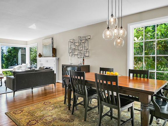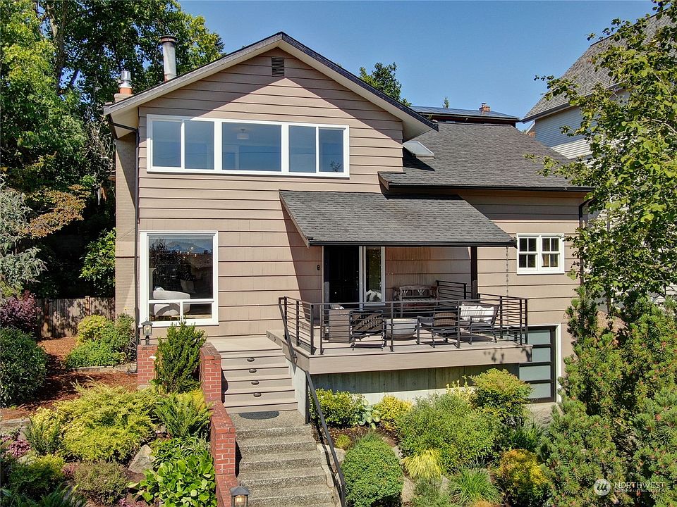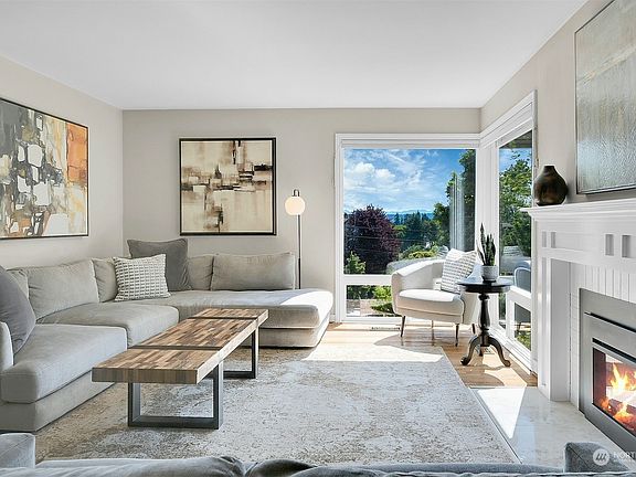 Enjoy this remarkable Hawthorne Hills home updated in systems, structure, and style and sited above the street with fantastic Mount Rainier and Cascade Mountains views. Featuring a formal entry, gracious social spaces featuring a living room and dining room with hardwood floors, a mantled fireplace, and corner picture windows, a remodeled kitchen with high-end stainless appliances, quartz counters, custom cabinetry, and sliders to a fabulous covered deck, yard, gardens and patio area. Joined with an inviting front deck with territorial perspectives - it's a perfect opportunity for entertaining. Also, enjoy 4 bedrooms (3 on one level) including a large primary with an office, 2 remodeled bathrooms, an unfinished basement, and a garage.