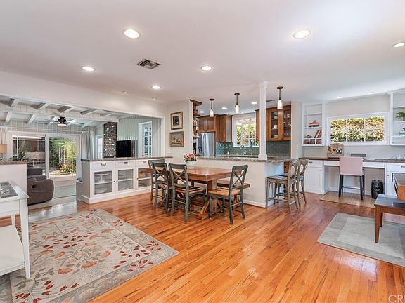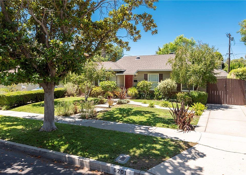 Welcome to this charming three-bedroom, one-and-a-half-bath home located on a tree-lined street. The entry leads to a large open-concept dining area and kitchen. There is a comfortable family room adjacent to an enchanting, large, lush backyard that features patio with space for dining al fresco, and plenty of room for chairs and love seat or sofa. Further back in the yard, completely separate from the main house, is a two-story structure that was built as a rec room--but in fact is like a secondary home--complete with a living area and tv, kitchen with plenty of counter space, and full-size refrigerator as well as dining area. Staircase leads to a charming, large owner's suite with a beautiful, architectural, vaulted open-beam ceiling, a bathroom, and a very spacious, inviting deck with bird's-eye views. This cottage-like structure has been an Airbnb rental favorite prior to COVID-19. It is registered with the city of LA as well as Airbnb. The garage has been fully drywalled, featuring a complete air-conditioning/heating unit, and is currently used as an office. The roof on the main house is apx 6 years old. The house has also been updated with a tankless water heater. This property is a great value and a must see!
