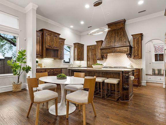 Comfort and sophistication meet in every corner blending formal and casual spaces for both entertaining and everyday living. A chef's kitchen offers Viking appliances, glass-front cabinetry, and a spacious butler’s pantry that connects to the formal dining room. The downstairs living room overlooks the breakfast nook and kitchen and is anchored by a cast stone gas fireplace and wet bar. A private two-story office on the first floor has French doors, beautiful millwork and built-ins for work-from-home convenience. Completing the main level is the downstairs primary suite that offers patio access and a spacious bathroom with soak tub, separate shower, dual vanities and a large walk-in closet. Upstairs, a game room with its own fireplace and wet bar complements a separate media room with two-level seating, a second primary and two additional guest bedrooms each complete with their own balcony. Enjoy an outdoor oasis while relaxing on the large covered patio with fireplace and Viking grill. Mature trees, a pergola and turfed yard complete the beautifully landscaped backyard which offers tremendous privacy. Additional highlights include a new roof (scheduled for Sept '25) and redone hardwood floors on the main level (2020). Ideally situated in the Avignon subdivision with access to the community pool, this home offers a convenient location in close proximity to all the shops and restaurants that Plano has to offer, as well as easy access to major travel arteries for a quick commute anywhere in DFW.