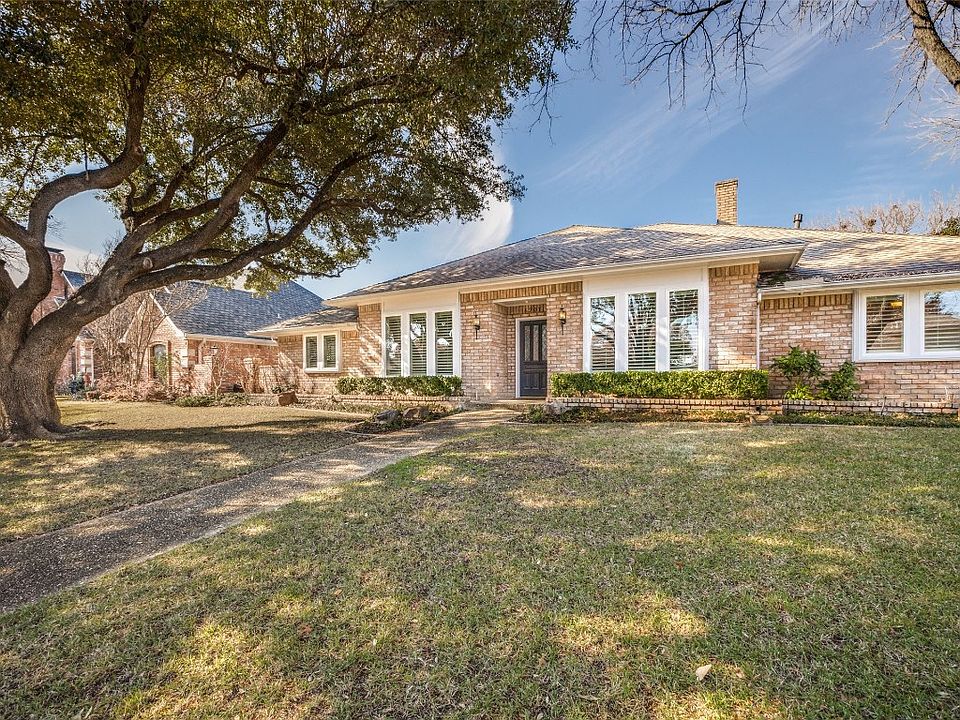Hard to find LOVELY traditional with 4 BEDROOMS, 3 BATHS + STUDY with 2 LIVING AREAS, AMAZING 24 x 21 COVERED PATIO & SPARKLING PRIVATE POOL with ARTIFICIAL GRASS DOG RUN located in the sought after neighborhood-PRESTONWOOD & in the AWARD WINNING RISD. Private OFFICE w-FRENCH DOORS. Inviting formal dining room w-PLANTATION SHUTTERS. WONDERFUL family room w-WETBAR, built-ins, FIREPLACE w-GAS LOGS & THERMAL WINDOWS that open overlooking the AMAZING covered patio & PRIVATE POOL. UPDATED kitchen w-GRANITE counters, BOSCH 5 BURNER GAS COOKTOP, CONVECTION OVEN & WALK-IN PANTRY. PRIVATE GAMEROOM w-electric shades & access to backyard. SPLIT 4TH bedroom & 3rd bath. SPACIOUS PRIMARY bedroom w-UPDATED bathroom, TOTALLY separate vanities & WALK-IN CLOSETS, LARGE walk-in SHOWER & separate tub. SEE LIST OF IMPROVEMENTS ONLINE. Both refrigerators, washer & dryer + equipment for backyard sound system to remain with the property. OVERSIZED garage. NEIGHBORHOOD PID with 24-HOUR POLICE PATROL.