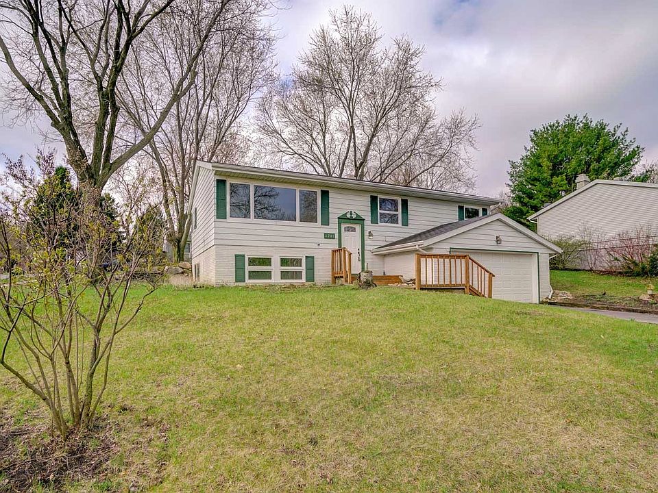 Very nicely updated home with new bathrooms, granite tops in the kitchen, new stainless appliances, interior paint, all new flooring, new light fixtures, interior doors and moldings, and windows in lower level. Simply move in and enjoy! Enjoy the wonderfully sunny south exposure, huge yard, and 4-5 bedrooms (3 on main level). Patio door to patio overlooking large backyard with patio. Exposed lower level offers family room /den/office/5th bedroom with fireplace, 4th bedroom, full bath, storage area and garage entrance. Walking distance to elementary school and beautiful elevated park-like view from front of house.
