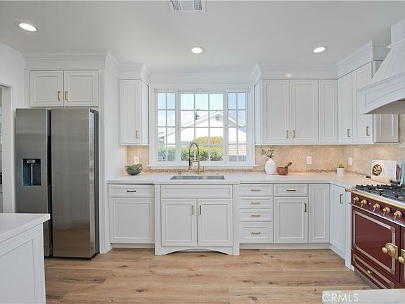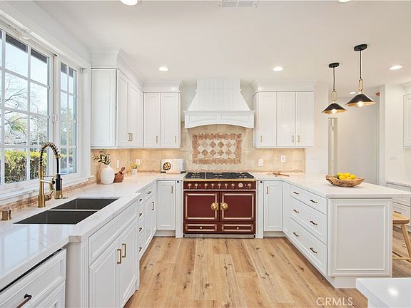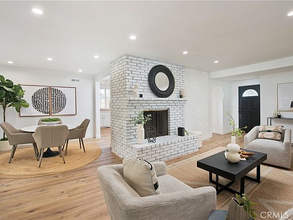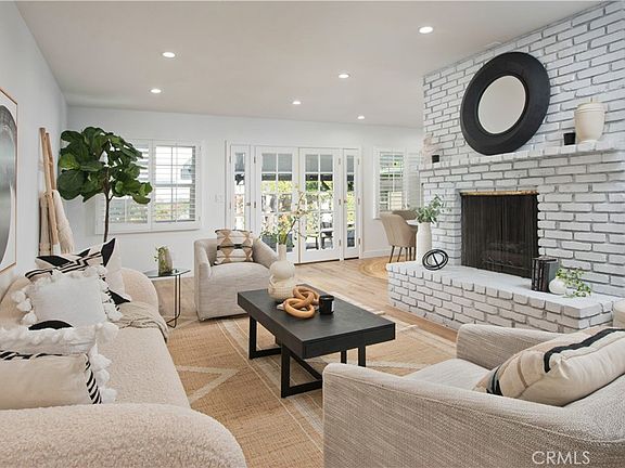 The open-concept floor plan seamlessly integrates the living spaces, creating an inviting atmosphere perfect for relaxation and entertainment. Complete with new floors, recessed lights & fresh interior & exterior paint. The gourmet kitchen is a chef's dream, featuring stainless steel appliances, a Cornue stove, and quartz countertops atop an oversized breakfast bar. A separate laundry room, with a folding counter conveniently located off the kitchen, adds to the home's functionality and convenience. The living room, complete with a cozy fireplace and French doors leading to the grassy backyard, provides an ideal space for gatherings with family and friends. Adjacent to the living area is a spacious dining area, perfect for hosting intimate dinner parties or casual meals. The primary suite is a luxurious retreat, boasting two closets and a brand-new bathroom with an oversized shower, LED lights, and a double sink vanity. Three additional bedrooms and two bathrooms offer comfort and versatility for family members or guests.
