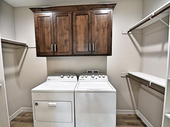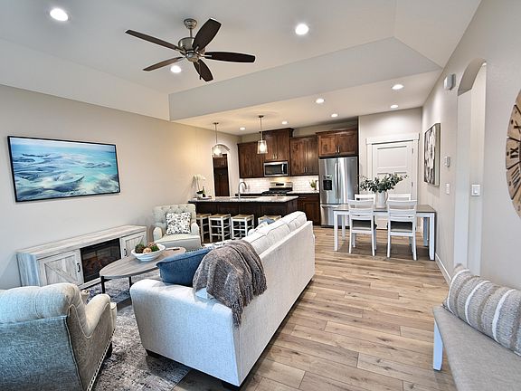 Our 1-bedroom Cottages are perfect for those who want a manageable size home and a worry-free style of living. The covered patio is at the front of the home for residents to enjoy the Western sunsets. The entry is next to the patio and the spacious family room with 10' high trayed ceiling. The kitchen overlooks the family room and has custom alder cabinets with pull outs, granite counters and Whirlpool appliances. The food prep can be done on the peninsula with seating for four or guests can sit at the dining room table which is next to the pantry. The master suite features a recessed backlit ceiling with a fan and crown molding. The bathroom can be accessed through the 3' pocket door and features a 3'x6' bath bay with a handheld shower head, dual undermount sinks and linen cabinet. For convenience, the walk-in closet is adjacent to the bathroom and the washer & dryer is inside the closet to make doing laundry quick and easy. The mudroom is next to the kitchen with bench seat and hooks for coats. The heated and finished garage with painted epoxy floor has a floor drain, hot & cold water, a 10' wide door and is 24' to 26' long and has a storage area above. The handicap accessible features, vinyl plank flooring throughout and 3' wide doors offer more flexibility for both residents and guests. All the exterior materials are maintenance free including LP Smart Side siding, impact rated shingles, fiberglass doors and Andersen windows. The homes are built with the same quality and attention to detail that you can expect from K & L Homes and our over 45-year tradition of building in this community.