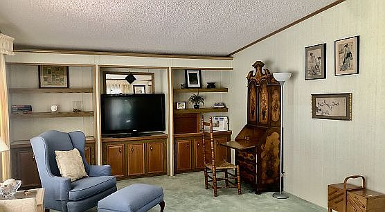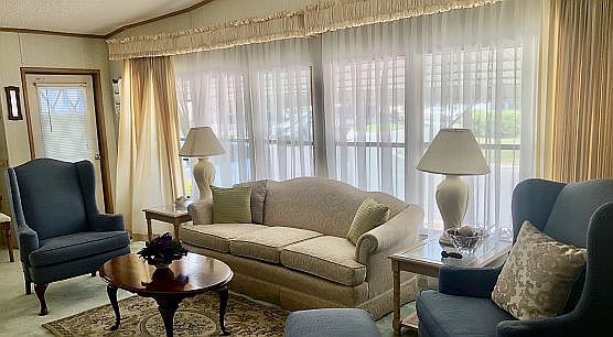 Looking for a place that's wide open, over 1500 sq.ft. on a nice corner lot, in a Pet Friendly community! WELL, this is the house! It has a great floor plan, new energy efficient roofing with new skylights and extra insulation in 2018, New A/C and Duct, Feb, 2025. The front living room is 12'X 26' carpeted with wall to wall built in cabinets, shelving, and plenty of storage which leads to the oversized dining area, perfect for entertaining. The kitchen has lots of cabinets, counter space and a panty/closet. The center island has the stove with a surounding counter to sit at. Adjoining the kitchen is a 12'X12' den/family room, also with a built in cabinets, and a very nice screened lanai with jalousie windows. A great room to eat and enjoy the outdoors. Off the other side of the kitchen is another 23'X 12' screened lanai with vinyl sliders and into your 9'X 8' utility shed with a great work bench area. The 12'X14' master bedroom and bathroom completely remodeled, luxury vinyl flooring, bedroom completely done with sheet rock, bathroom totally done over with new vanity sink, commode, tiled shower, exhaust fan, and washer and dryer too. This room was taken down to exterior walls and new metal studs installed. The12'X 11' guest bedroom also has luxury vinyl flooring, freshly painted, new slider door going into bathroom. Our Community has a great clubhouse with great events, and with so many wonderful people. This is a 5 star park just minutes from jajor expressways, and in close proximity to major airports, shopping, resturants, churches, medical facilities, fishing, golf courses and Gulf beaches! A great buy and a lot of house! Turn Key. Contact Sandy Maxham at Claudia's Moble Home Sales at 941-447-6001.