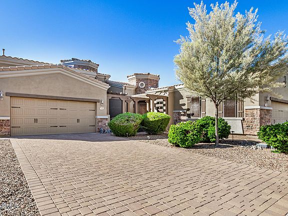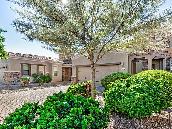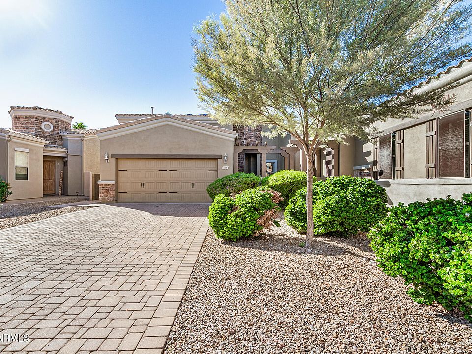 Welcome to Tuscany Villas - one of Northeast Mesa's most desirable gated communities, nestled alongside a scenic golf course. This elegant retreat offers: A beautifully upgraded kitchen with granite countertops and rich cherry cabinets - Stylish tile flooring throughout all main living area - Custom window treatments that enhance natural light and privacy - A spacious master suite with a full bath - A second bedroom with its own private full bath - A large laundry room and an oversized garage with a long private driveway. Step outside to a finished backyard with coveted west-facing exposure showcasing stunning sunsets, mountain and golf course views. Enjoy shaded evenings under the retractable awning. Recent upgrades include: Newer A/C unit (2020), Hot water heater (2024), New roof being installed. Tuscany Villas is a vibrant, golf community. The HOA provides exceptional amenities and services, including: Front yard landscaping - Exterior stucco and roof maintenance - Basic cable and internet - Access to a fitness center, clubhouse, heated pool, two spas, sport court, and all common areas.