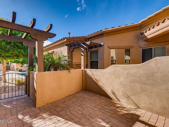 Located in the beautiful gated Golf Course Community of Tuscany Villas at Painted Mountain, this split floorplan 2 bed, 2 bath, 2 car garage townhome is perfect. Beautiful upgrades incl: maple cabinetry, NEW leathered granite in kitchen & master bathroom, white vanity in secondary bathroom, plank tile throughout, gas cooktop, new interior paint, ceiling fans t/o, soft water system, RO system, and more! The fully pavered patio is private and perfect for enjoying Arizona's weather. Tuscany Villas at Painted Mountain offers a heated pool, spa, pickle ball court, fitness facility, and clubhouse and public golf course. The HOA includes front yard maintenance, cable, exterior maintenance of unit, roof repair/replacement, and blanket insurance policy. This is a perfect lock and leave property!