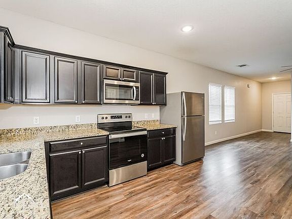 This home includes luxury vinyl plank flooring, granite countertops, and stainless steel appliances. As you navigate throughout the rest of the home, you'll find a kitchen area equipped with essential appliances, an open floor plan extending from the dining to the living room, and a wonderful primary ensuite bath.