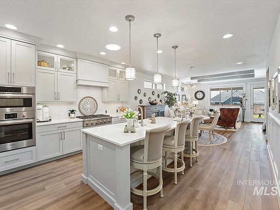 Invigorate your mornings with spectacular sunrises and mountain views from this better-than-new home in the exclusive gated community of East Ridge. Thoughtful and practical upgrades with energy-efficient design provide turnkey living, with quartz countertops, luxury Bosch and Thermador appliances, and elegant finishes throughout. The open floor plan is perfect for entertaining, highlighted by a cozy gas fireplace and covered patio. The spacious primary suite offers dual vanities, a walk-in shower, and generous walk-in closets, complemented by a junior suite for flexibility. Solar tube lights brighten the interior, while low-maintenance living is enhanced by access to a private dog park. Near Discovery Park, YMCA, Boise Ranch Golf Course, and shopping, this home blends natural beauty, modern comfort, and timeless charm—crafted by one of the area’s premier luxury builders.