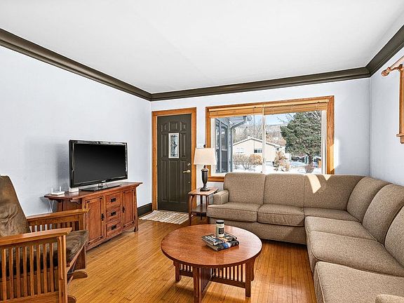 Original hardwood floorsLarge l-shaped back deckCozy gas fireplaceFunctional kitchenSmall dining areaSunny corner lot