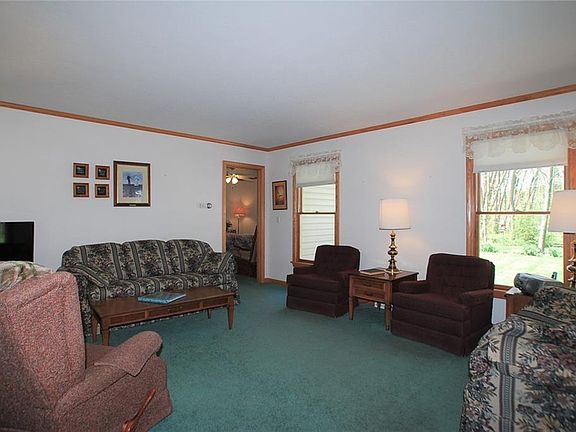 Enjoy the peaceful setting and convenient location of this custom-built three-bedroom, 2 1/2 bath ranch home. Resting on a landscaped 100 x 309 lot with woods in the back yard, you'll enjoy this easy-living open floor plan. Master suite includes walk in closet and private bath. Front bedroom features a vaulted ceiling and palladium window. First floor laundry. Large garage with door to the back yard. Retractable awning over back yard patio. Full dry basement is great for storage.