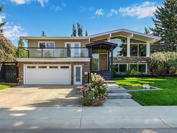 Welcome to this beautifully renovated & updated 1646 sq ft bi-level located in the desirable Grandview Heights steps to the highly rated K-9 school, the trail systems of the river valley, the U of A & hospitals, & a short commute to downtown. The main floor offers a chic modern kitchen with stainless steal cabinetry, limestone counters, high end appliances, solid wood accents & unique glass island. Natural light streams through a wall of soaring windows into the adjacent living room with a gas fireplace & limestone surround. The dining room, also with a huge window has garden door access to the west deck overlooking the farm. Three bedrooms, one with a 3-piece ensuite, a 2-piece powder room & a spacious W-I pantry complete the main level. The fully developed lower level has a rec room with a wood-burning fireplace, two additional bedrooms, a 4-pce bathroom/laundry, & access to the over-sized heated double attached garage. Over 100K has recently been spent on upgrades in this terrific move-in ready home.