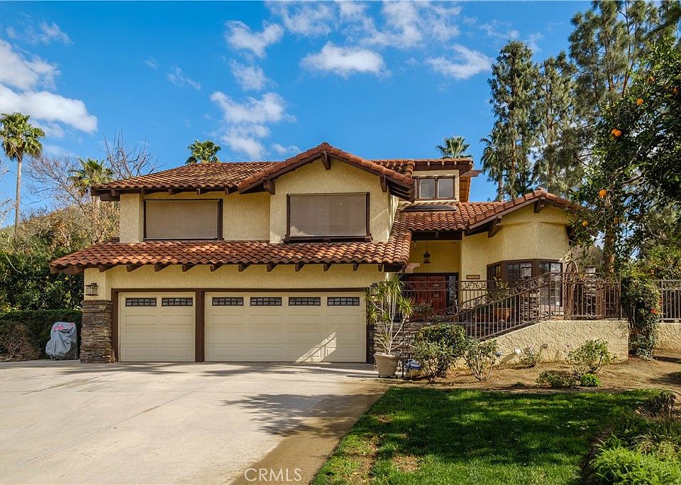 ** GORGEOUS POOL HOME ** Located in a cul-de-sac, nestled in the prestigious Hawarden Area of Riverside. This architectural, custom tri-level built home is ready for your family. Walking into the home you will notice the spectacular sky windows allowing natural sunlight to shine through at all times of the day. The focal point of this home is the grand stone, double sided fireplace reaching to the stunning vaulted wooden ceilings in the large living room on the main level. The spacious kitchen offers plenty of counter and cabinet space. A cute and cozy breakfast nook provides a beautiful view of the front yard where you can enjoy your morning coffee. As you walk down to the first level, there is an ensuite guest room. There is a family room with a second fireplace and a full wet bar to entertain guests while overlooking the outdoor pool. The top level offers two large, spacious rooms. Also on the top floor is the master suite which has plenty of room with vaulted ceiling and large master bathroom. Off the master suite is a sunroom that overlooks a beautiful backyard and can be used as an office or gym. The backyard is great for entertaining with its serene landscaping. A small stream flows off the waterfall into the stone pool. This calming area provides plenty of area to relax and enjoy time with your family. Take in the gorgeous summers under the custom patio and gazebo.