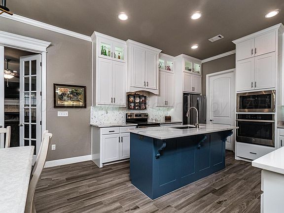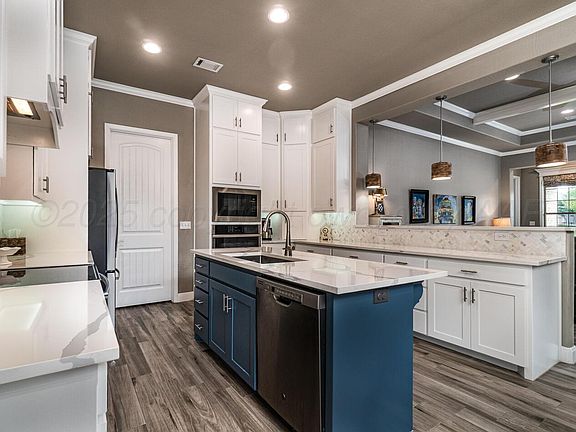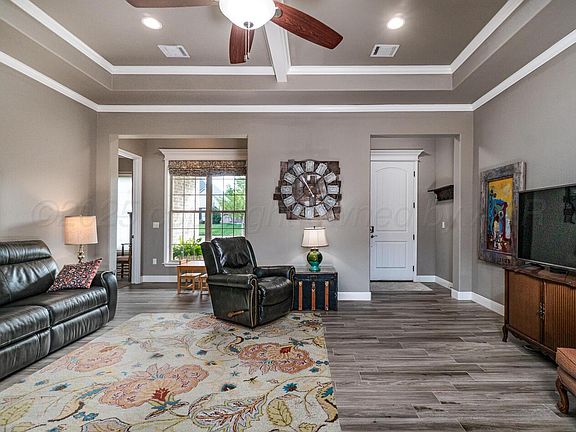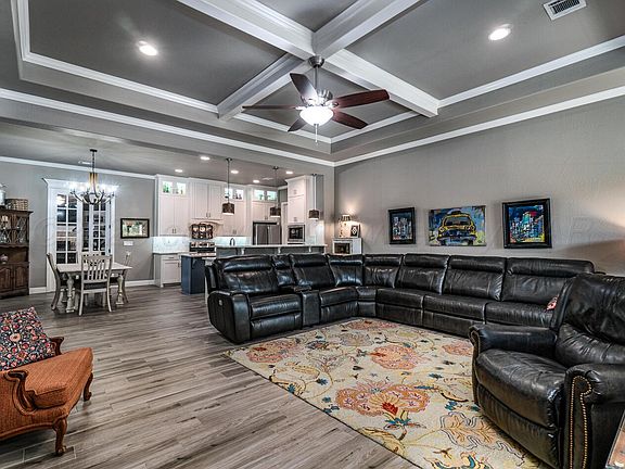 Time Square ..This home has phenomenal open space for your Family including a den with a Fireplace.The primary bedroom is isolated with an impressive primary bath and closet and huge shower. You will also see 9 ft ceilings with 8ft doors and a unique ceiling with beams in the living area. Newer quartz counter tops and tons of storage in the kitchen. Outside you will find an extended patio with electrical shades , side storage bld and a three car garage with one side having heat and air.This home will not disappoint you . It is like new .