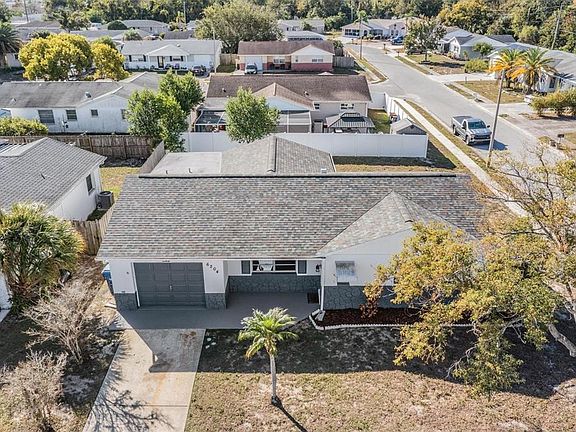 Welcome to this well maintained 3/2/1 home. (Roof: 2019), (Electrical Panel: 2018), (Hot Water Tank: 2024), (HVAC: April 2025), (Ext/Int Paint: Oct 2025). NO HOA - NO FLOOD - LOW TAXES - NO CDD - located at a quiet street next to a dead end. Step into your new home and feel at ease with the security of the placement of the front door, ensuring more wall space and privacy. The rich luxury vinyl plank floors, complemented by a 5" floor trim, add a touch of elegance to the space. The bright kitchen features a double sink, counter bar, and a large pantry, overlooking a spacious family room and eating area. All bedrooms have ample space with generous closets, while a flex room can serve as an office, workout room, game room, man cave, craft room or third bedroom, complete with windows, AC vent, and a metal door leading to the backyard. Convenience is key with a second driveway option for added flexibility. The shower bathroom provides easy access to the garage, family room, and flex room, making this home perfect for entertaining and everyday living. Don't miss out on this opportunity to make this house your new home. Take advantage of retail shopping & restaurants nearby. West Pasco Little League field is nearby. The Gulf of America along with many beaches are at your fingertips. A newer VA Outpatient hospital is located in the next town. MacDill Air Force Base, Busch Gardens, and Tampa (TIA) Airport are appx 36 miles away and St Pete/Clearwater (PIE) Airport are appx 27 miles away. Two new leading edge technology centers will be opening in 2026: The Moffitt Cancer Center at SPEROS (opening Jan 2026) is a world-class state of the art facility with an expansion campus in Land O Lakes (Pasco County) and Richard M Schulze Family Foundation Proton Center (a therapy system) will be opening in the spring of 2026. Pasco County grants easy access to anywhere in central Florida. Your playground awaits!