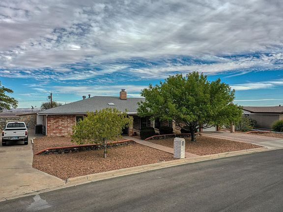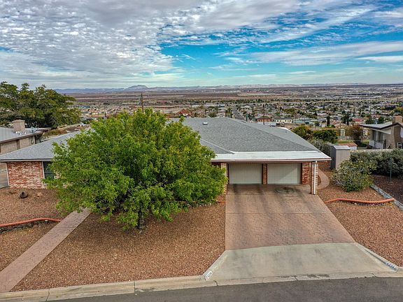 Your friends will all be jealous when they get a look at your new single level, ranch style home, perched on the East side of the Franklin Mountains. This beauty has 3 bedrooms, plus maids and has awesome views no matter which way you look. Mountains or sunrise vistas will take your breath away. These views also come with a pretty fantastic house as well. With over 3000 square feet there is plenty of space for you to spread out. Formal Dining, family room with a fireplace and an enclosed sunroom large enough for a pool table mean that no matter what your mood, there is a place for you to relax and soothe your soul. In a small subdivision with no through traffic. On aprox 1/3 acre lot, features RV parking and a terraced garden in the back.