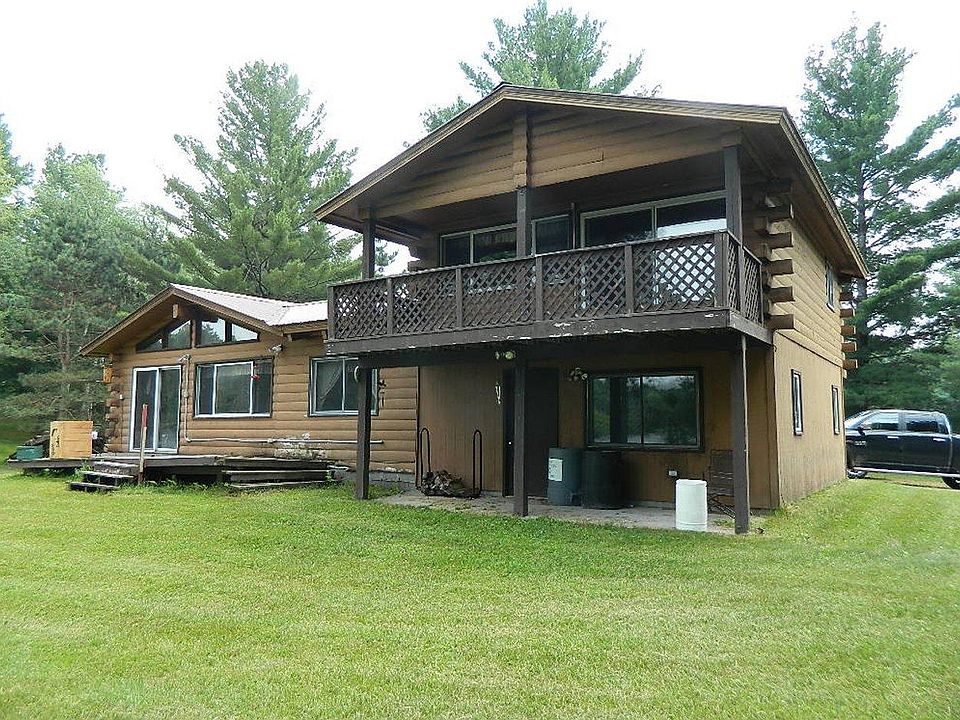 (240/DE) Let's go fishing!! Large 1.5 story log sided house with 1,952+/- sq. ft. with 100+/- ft. of level lake frontage on Lake Winter. The home was built in 1985 and located 2 miles S. of Winter on Everson, a dead end road. Knotty pine walls, ceilings and wood floors. There are 3 BRs, 2 baths, living room, family room, recreation room, with a dry bar and a large storage room. There is a cathedral ceiling in the living room with a wood stove. Large insulated, heated, 3 car detached garage. Pontoon boat and lawn mower come with the home. What a catch!! 2019 taxes: $2034 (9-38-5W)
