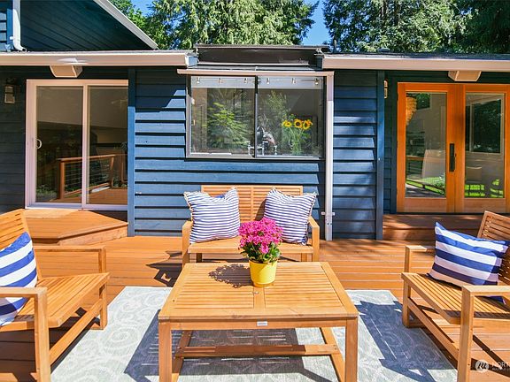 Nestled on a quite serene treelined street w/no through traffic, this lovely home boasts a large level lot, sun drenched decks & a private separate studio for use as a retreat or office (sqft not included). Updated kitchen & baths, all hardwood floors & amazing views of a parklike setting from all windows. A cozy wood burning fireplace adds to the ambience of a perfectly scaled room for reading & enjoying views of majestic trees, a gardener's paradise. The upper floor includes the primary bedroom w/ensuite bathroom 2 add'tl bedrooms & full bath. The open kitchen & dining flows into a well portioned living room w/vaulted ceilings & skylight, great for gatherings. The new bike path on Eagle Harbor Dr. invites exploration by bike or foot.