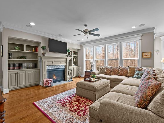 A former Parade of Homes showcase, this 5-bedroom, 4.5-bath residence by Cityscape Builders offers 3,732 sq. ft. of luxury in one of Heritage's most coveted cul-de-sacs. The main level includes a private guest suite with walk-in shower and an additional flex space ideal for a home office, sitting room, or library. The gourmet kitchen features granite countertops, a large island for larger gatherings and everyday on the go dining, stainless steel appliances including a double oven and microwave, a walk-in pantry, and butler's pantry, and opens to a living room with custom built-ins, mosaic-tile fireplace, built-in desk, and casual dining space. A formal dining room with coffered ceiling adds elegance. A mudroom full of character just off the garage creates the perfect drop zone. Upstairs, the owner's suite includes a trey ceiling, spa bath with dual vanities, walk-in shower, and large closet. Three additional bedrooms, each with walk-in closets and convenient bath access, a bonus room with full bath and dual sinks. You will also find a walk-up attic plumbed for a bath, and laundry room with sink to complete the level. Outdoor living includes a screened porch, patio, fenced yard, and two-car garage. Living in Heritage means more than a home, it is a lifestyle with trails, golf, swim, tennis, and parks.