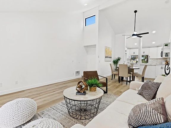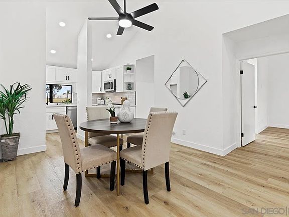 Beautifully remodeled top-floor 2-bedroom unit in highly sought-after University City! This home features an open, spacious floor plan with vaulted ceilings, fresh paint, luxury vinyl plank flooring, recessed lighting and ceiling fan. The upgraded kitchen boasts custom cabinetry, quartz countertops, tile backsplash and stainless steel appliances. Remodeled bathrooms come with designer fixtures, and the unit offers abundant natural light, ample storage and expansive closet space. Enjoy the convenience of a one-car epoxy garage, an additional parking space and a sizable balcony perfect for relaxation or outdoor gatherings. Community amenities include a sparkling gated pool and guest parking. Close to UTC Mall, UCSD, pristine beaches, and with easy freeway access, this is a must-see opportunity!