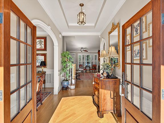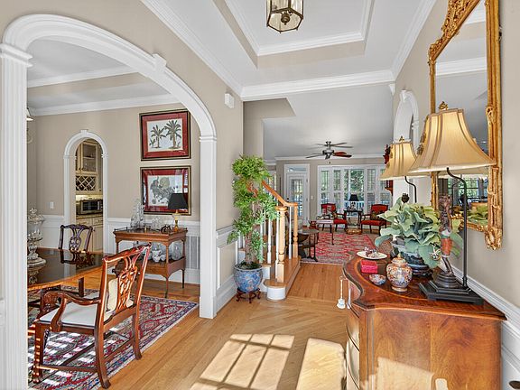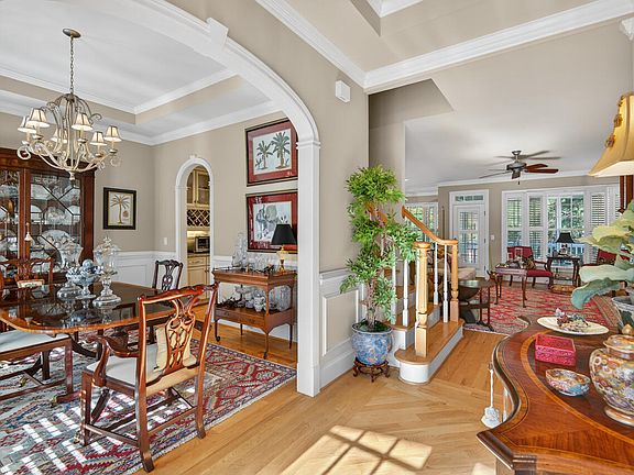 Gorgeous home - replete with architectural details - located in Treyburn Forest on quiet, tree-lined street. Lots of outdoor spaces: covered brick front porch, screened-porch, deck and patio overlook private back yard. Open floor plan, 1st floor primary, 4th bedroom/Bonus room! Graceful, curved archways lead you from one beautiful space to another. At the heart of the home is a fabulous kitchen with beautiful cabinetry featuring under cabinet lighting, granite counters with tumbled marble backsplash, and breakfast bar with pendulum lights. SS appliances and gas cooktop - all open to the informal eating area and welcoming family room with fireplace. A spacious dining room via butler's pantry is perfect for family and friends! Large master retreat with tray ceiling boasts spacious spa-like bathroom with tub, separate shower, dual vanities and generous closet space. The Treyburn area is one of Durham's favorite neighborhoods with many optional memberships for those who want to join the nearby Treyburn Country Club.