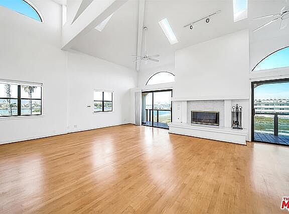 Private elevator takes you to top floor. You will be amazed with the awesome 3-sided views of the ocean, main channel, lagoon and city lights . High ceilings in living room, which features a fireplace, deck facing park and lagoon and wet bar. Open kitchen with stainless appliances opens to dining area, again with views. Wood floors in living areas. 3 bedrooms with new carpet, and 2 baths on first level. Walk in closet in master . Loft off master, which is ideal for gym or office. Family room and 3rd bath on second level with direct access to large private sun deck with exceptional views and built in barbecue