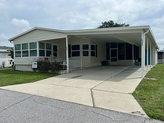 WILL YOU BE THE PROUD OWNER OF THIS FABULOUS HOME? MUST SEE!! 55+/1991/2 BD/2 BA/1200 SQ FT/PARK FEES ONLY $706/LARGE PALM HARBOR HOME/TOTAL REMODEL/SPACIOUS LOW-MAINTENANCE LOT/FRONT FLORIDA ROOM WITH LOTS OF WINDOWS/SIDE SCREENED LANAI/HUGE SHED and a second additional STORAGE SHED,THIS HOME HAS SO MUCH MORE STORAGE AND DID I SAY STORAGE !!!! Move in ready this home has everything you need. No expense has been spared on the total remodel of this beautifully, well designed home. This includes new windows, new floors, new paint, new crown molding, new appliance( Fridge and DOUBLE OVEN), new tile shower, new washer and dryer, new granite countertops. You will need to see this to truly appreciate what has been done. You WILL NOT find another home like this at this listing price. This is one of the prettiest homes you will find located in the people friendly and pet friendly 55+ gated community of Sundance where you will find an active lifestyle, with amenities including a beautiful clubhouse with a full kitchen, a gym room, pool table, and library, as well as heated pool and spa, and shuffleboard courts. Located in Zephyrhills you will find all the benefits of small town living with all the conveniences of local shopping, restaurants, medical facilities, golf courses, nature areas and fishing areas, not to mention easy access to downtown Tampa, all the bay area beaches, and Tampa Airport, as well as heading over to the Orlando area for all the attractions. You can stay as busy or relaxed as you choose. This all newly remodeled home is just waiting for you to move in and start your next chapter. Schedule your showing today and don't miss out! CFMHS, Inc. cannot guarantee or warrant the accuracy of this information, measurements or condition of this property. Measurements are approximate. The buyer assumes full responsibility for obtaining all current rates of lot rent, fees, and pass-on costs. Additionally, the buyer is responsible for obtaining all rules, regulations, pet policies, etc., associated with the community, park, or home from the community/park manager. CFMHS Inc. is not responsible for quoting of said fees or policies.