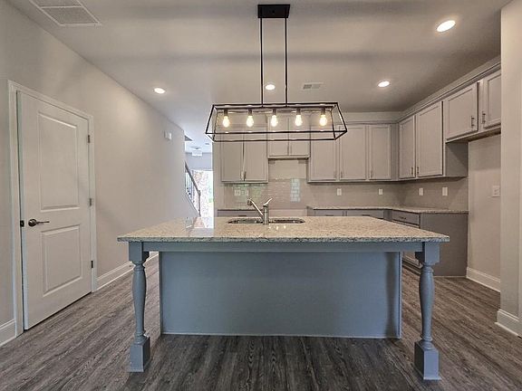The Nicole Plan – Experience modern living in this stunning 3-bedroom, 2.5-bath, two-story townhome with a 1-car garage. The main level features luxury vinyl plank flooring that continues up the stairs and into all bathrooms, offering both durability and style. The thoughtfully designed kitchen boasts 42” cabinets, granite countertops, and a huge island highlighted by an elegant 5-light chandelier—perfect for entertaining. A spacious pantry provides additional storage, while the open-concept great room creates an inviting space for gatherings. Stainless steel appliances include a range, microwave, dishwasher, and garbage disposal. Upstairs, the owner’s suite features a large walk-in closet and a beautifully tiled shower/tub combo, offering a relaxing retreat. The secondary full bath includes dual sinks for added convenience. Additional highlights include 2” faux wood window blinds throughout, blending comfort, style, and functionality in every room.