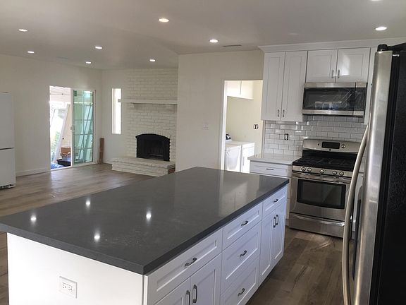 Completely remodeled! Very nice neighborhood in Tarzana! Twe brand new bathrooms! new kitchen with huge inland ! New dishwasher, microwave! Stainless steel appliances! New AC and ducts!new floors! New paint! Huge backyard covered patio new recess lights! Everything is new and ready to move in! Washer and drayer include