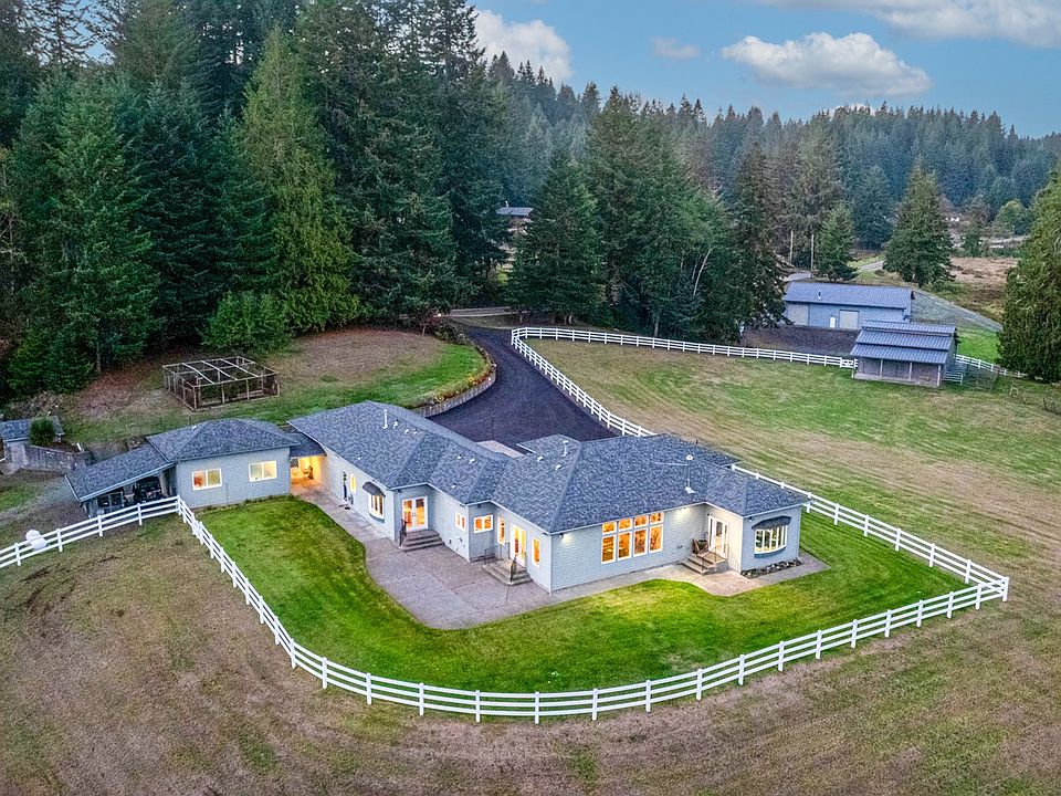 Mountain-top viewsFenced garden areaPicturesque meadowsExpansive fenced pasturesHorse barnRound penLuxury single-level home